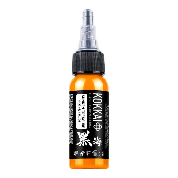 Add warmth and depth with Kokkai Sumi Ink in Sunken Treasure, a rich golden yellow that creates earthy, vintage-inspired tones. Perfect for shading, filling, and layered colour work in neo-traditional, new school, and nature or landscape tattoos.