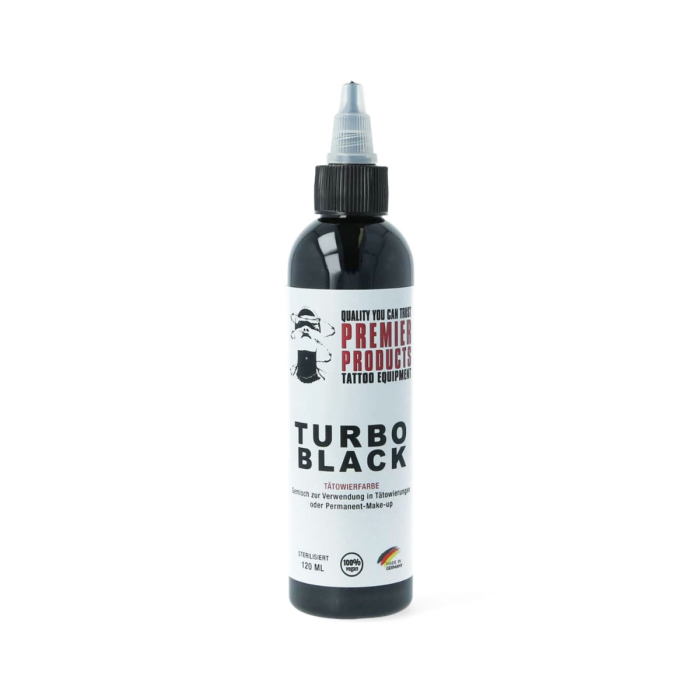 Turbo Black è l'inchiostro per tatuaggi nero più scuro offerto da Premier Products. Facile da usare e garantirà che il lavoro guarito rimanga nero e audace.