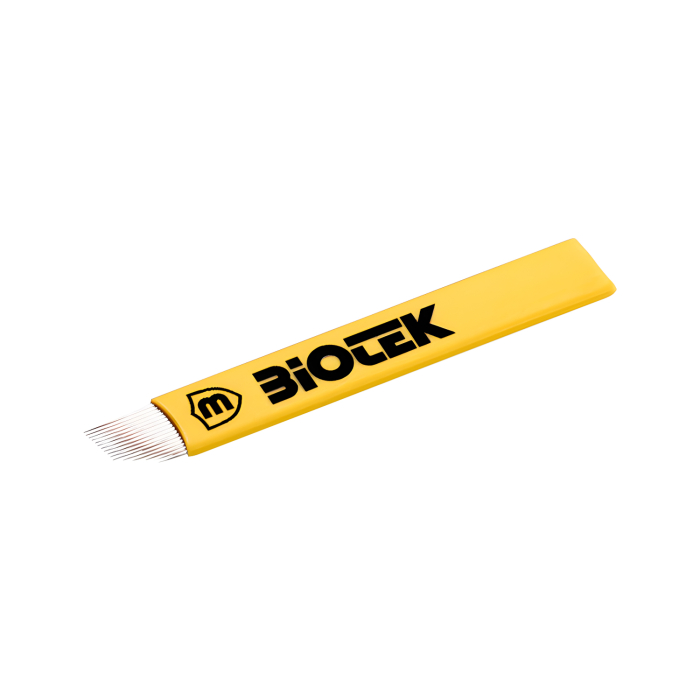 Le lame per microblading Flexy 16C di Biotek sono progettate per creare tratti di peli sottili e lavorare sulla pelle piĂą difficile nei trattamenti di microblading.