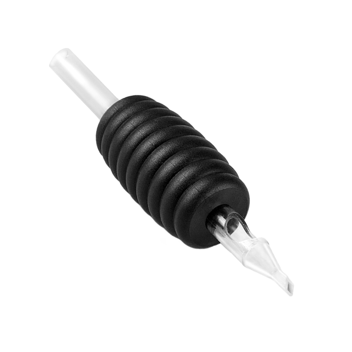 Scatola di 30 grip e tip monouso in silicone con tubo diamond e un grip di 30mm e stem trasparente per più visibilità durante il tatuaggio.