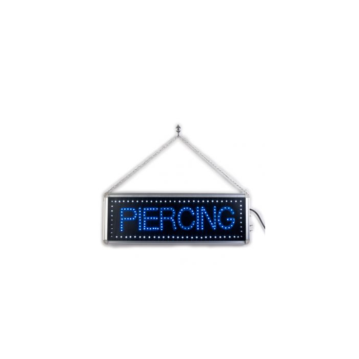 Il Cartello LED 'Piercing' può essere appeso nel tuo studio per dargli quel tocco di autenticità! Include una catena e può essere collegato direttamente alla presa elettrica con il cavo di alimentazione lungo circa 1900mm. Il Cartello ha le seguenti modalità: